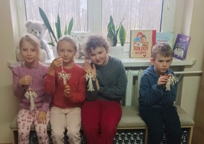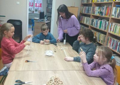 Warsztaty te były nie tylko okazją do rozwijania zdolności manualnych i kreatywności, ale przede wszystkim do wspólnego, radosnego spędzenia czasu i poczucia magii zbliżających się Świąt. Świetliczaki opuściły bibliotekę z dumnie prezentowanymi, własnoręcznie wykonanymi aniołkami, które z pewnością zawisną na honorowym miejscu.