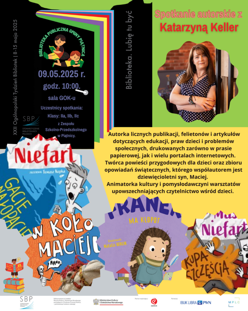 W Tygodniu Bibliotek będziemy gościć u Nas wspaniałą autorkę literatury dziecięcej. Takie spotkanie organizujemy dla klas drugich z Zespołu Szkolno – Przedszkolnego w Piątnicy.![]()